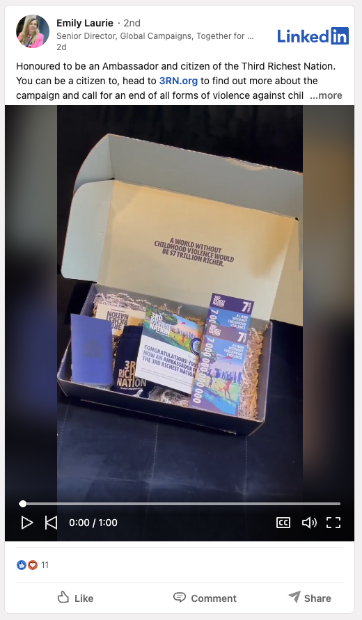 Thank you for joining the 3rd Richest Nation. Together we can end violence against children.